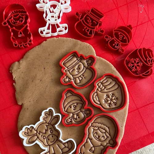 Deze set bevat 6 verschillende vormen in een warme kerststijl — ideaal om je koekjesplaten om te toveren tot een vrolijke, feestelijke mix.
