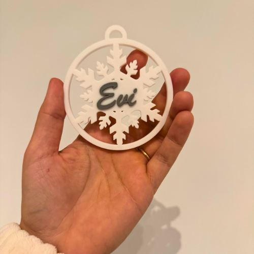Maak je kerstboom extra persoonlijk met deze 3D-geprinte platte kerstbal met naam of woord naar keuze. Ideaal als cadeau, herinnering, ornament voor baby's eerste kerst, huisdiernaam, gezinsets, vriendengroep of collega's.