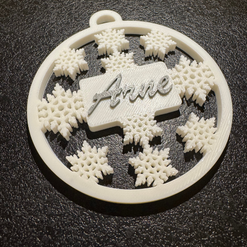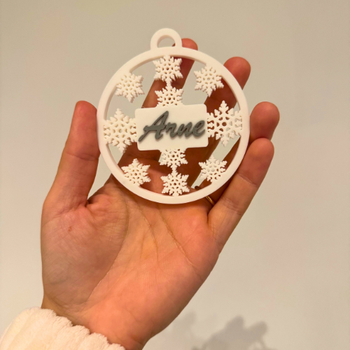 Maak je kerstboom extra persoonlijk met deze 3D-geprinte platte kerstbal met naam of woord naar keuze. Ideaal als cadeau, herinnering, ornament voor baby's eerste kerst, huisdiernaam, gezinsets, vriendengroep of collega's.